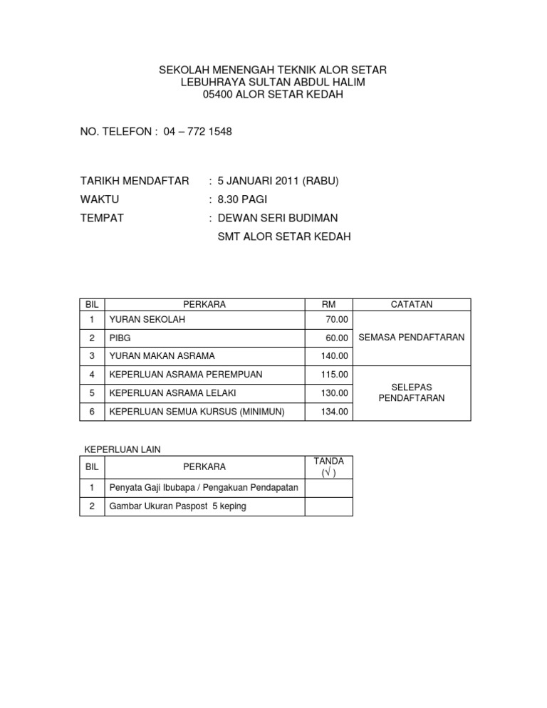 Sekolah menengah teknik atau ringkasnya smt merupakan sekolah menengah atas iaitu tingkatan 4 dan tingkatan 5 yang memberi peluang kepada murid yang mempunyai kecenderungan dalam pendidikan sains senarai smt terkini. Kami juga menyediakan prasarana yang terbaik demi meningkatkan kualiti pembelajaran dan pengajaran kepada semua pelajar kami. Sekolah kluster kecemerlangan 2009 telefon : See more of sekolah menengah teknik alor setar (rasmi) on facebook. Alor setar) is the state capital of kedah, on the west coast of peninsular malaysia. Mayoritas penduduknya adalah dari suku melayu kedah, diikuti oleh suku tionghua dan india. Kota alor setar merupakan ibu kota negeri kedah, malaysia. Sekolah menengah teknik alor setar , teknik okul. Despite the development and being the state capital. Mahathir bin mohamad'in doğum yeridir. For faster navigation, this iframe is preloading the wikiwand page for sekolah menengah teknik alor setar. Alor setar 05400, kedah view map. Pengetua pertama sekolah ini tuan haji abdul razak bin mohd.sharif amn.
